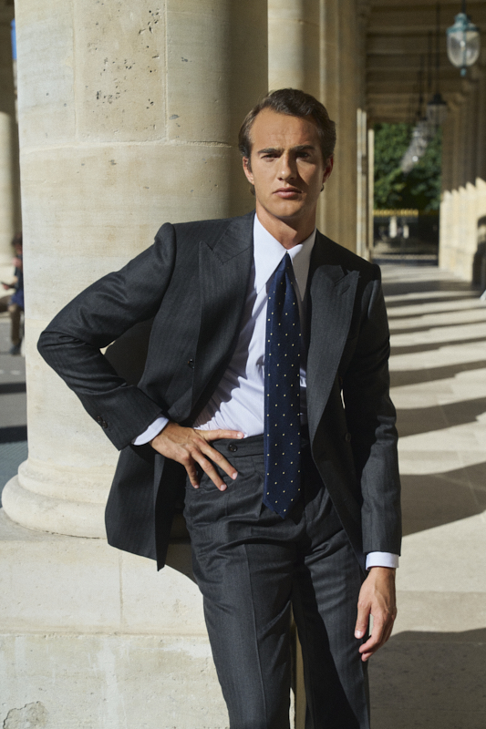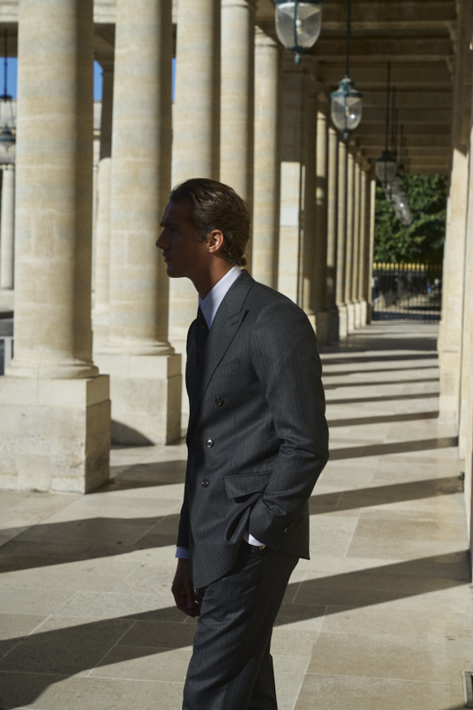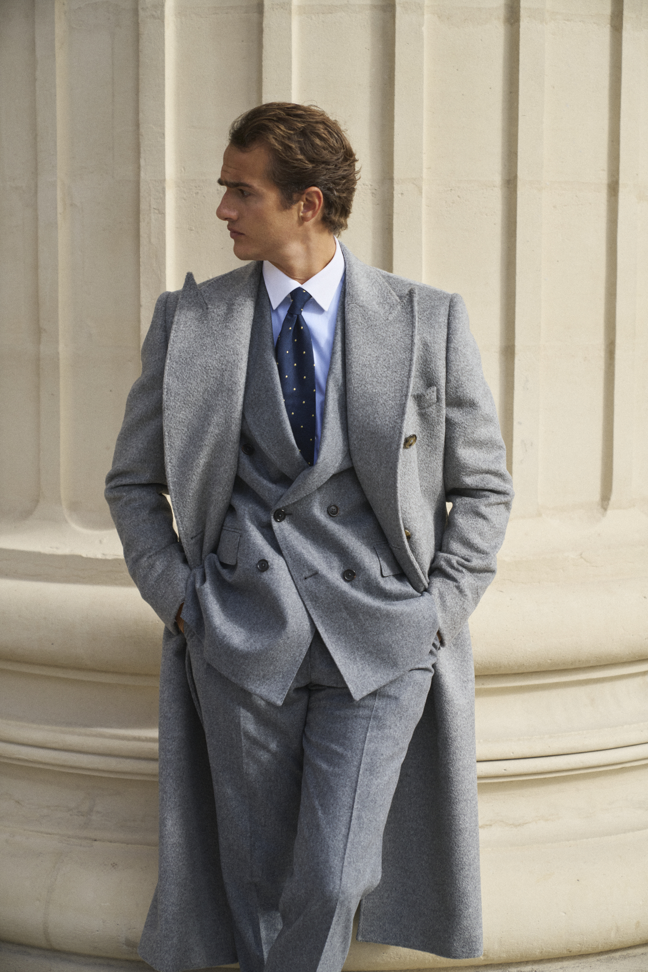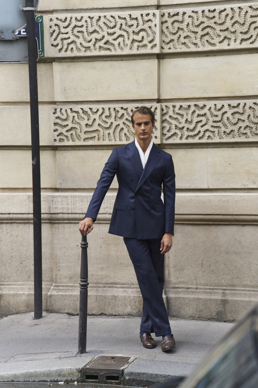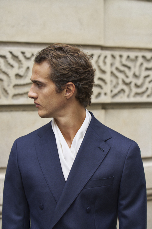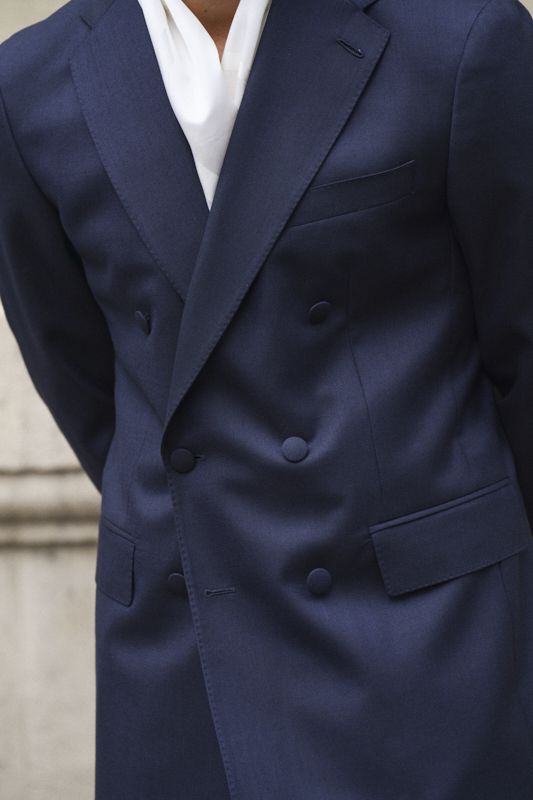 Modèle 3 : Costume croisé à cran ouvert réalisé en Super Gabardine Hardy Minnis.