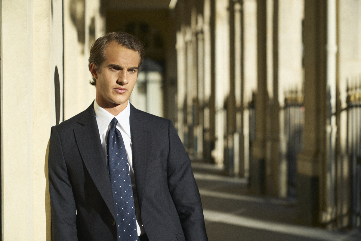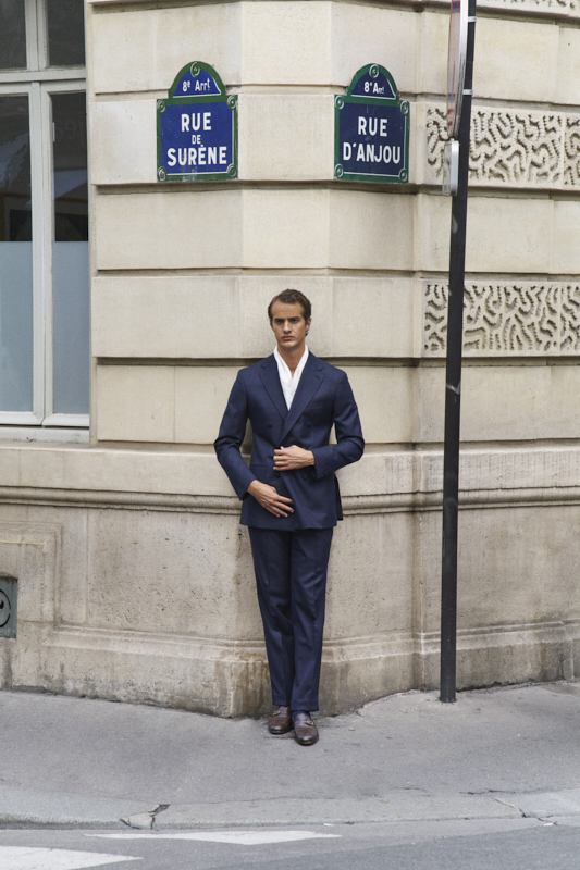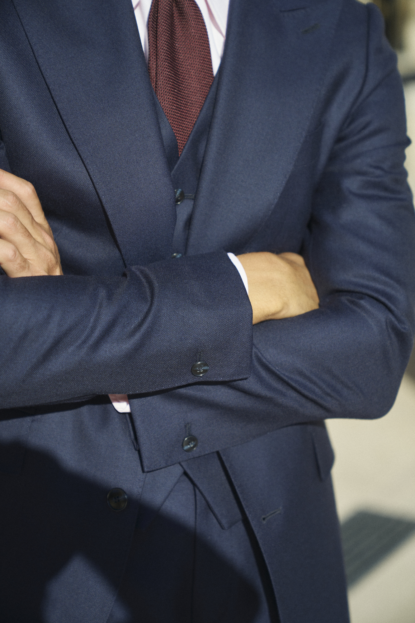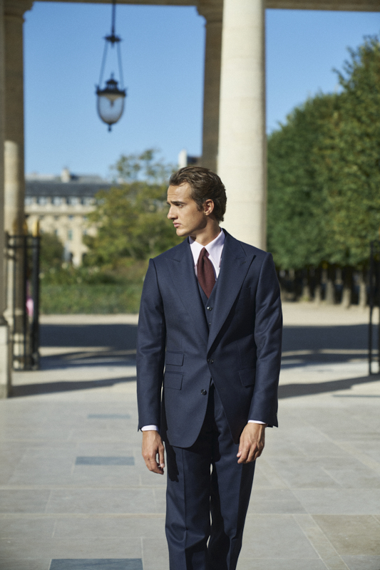 Modèle 3 : Costume croisé à cran ouvert réalisé en Super Gabardine Hardy Minnis.