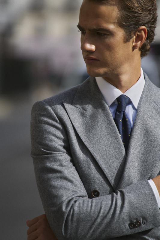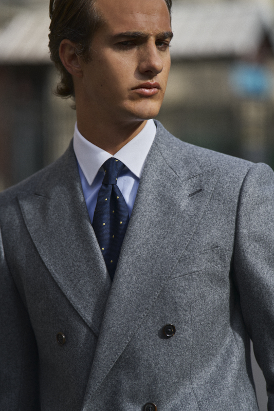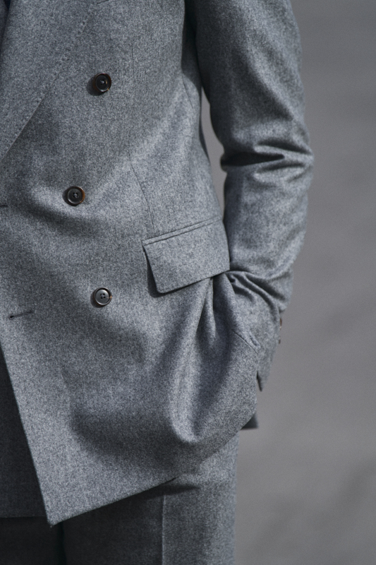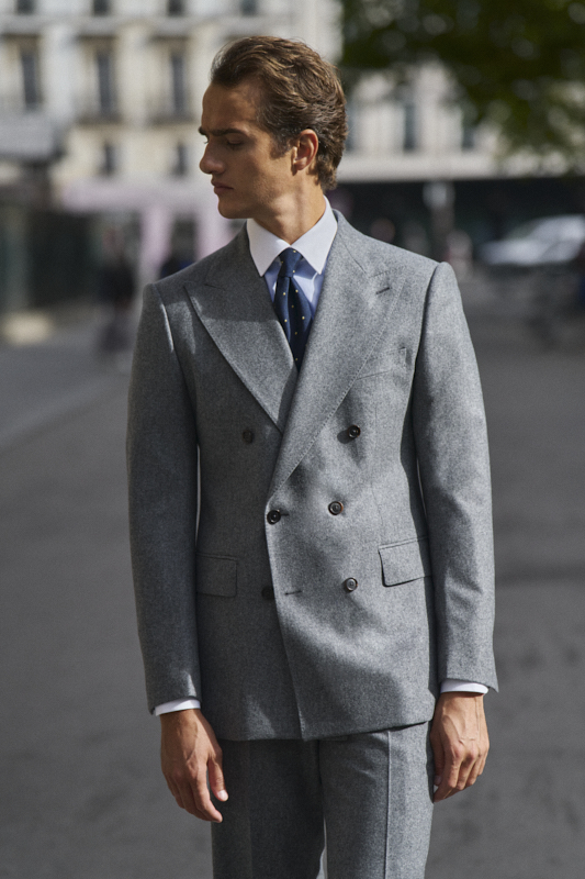 Modèle 2 : Costume croisé 6x2 en flanelle de laine grise Vitale Barberis.
