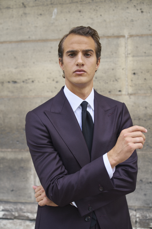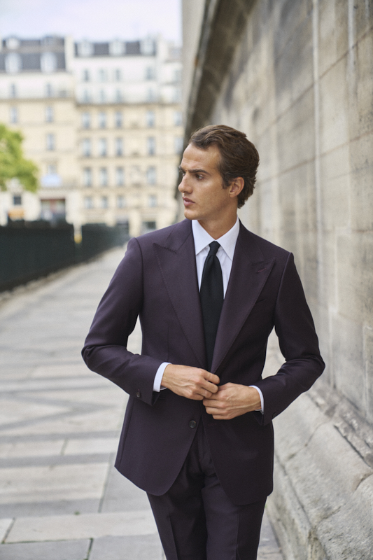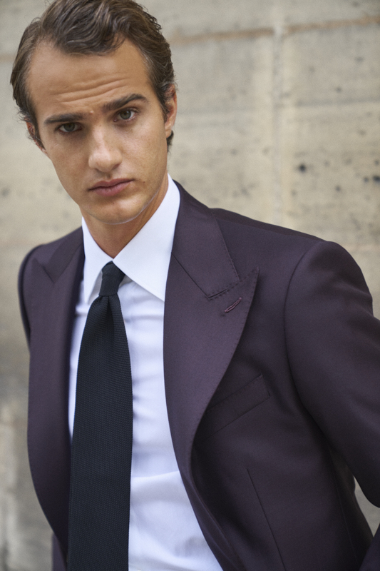 Modèle 7 : Costume à revers large Aubergine foncé en laine super 150's Loro Piana.