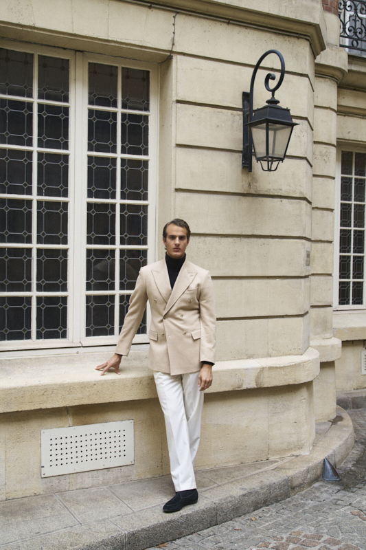 Modèle 4 : Veste croisée beige en poil de chameau Loro Piana.
