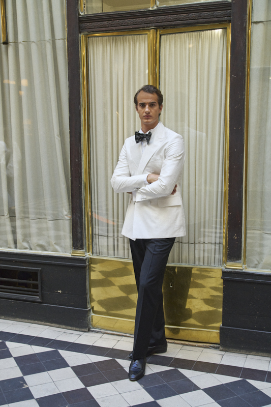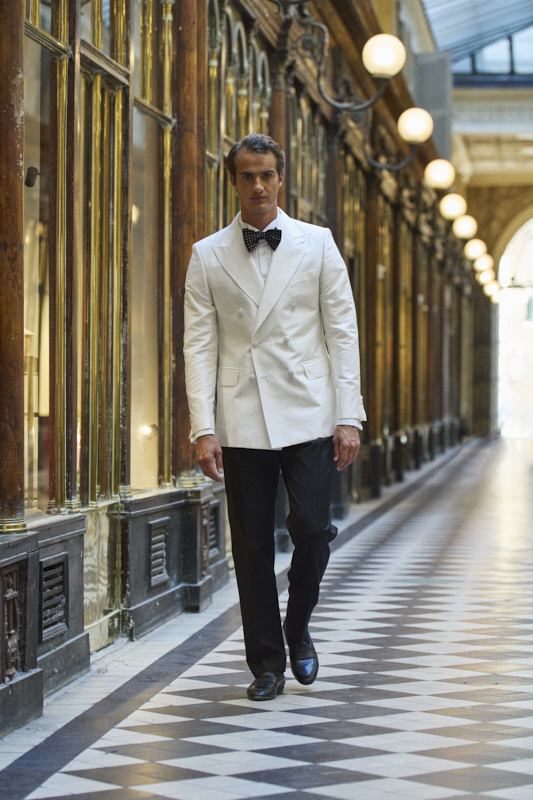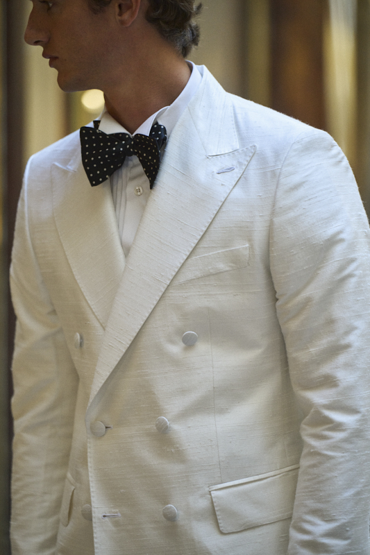 Modèle 14 : Veste de Smoking blanche en Soie sauvage Holland & Sherry.